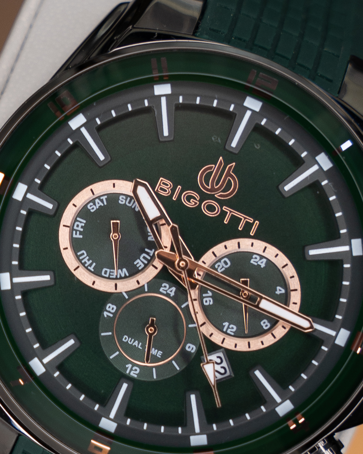 بیگوتی یک برند ایتالیایی است که به واسطه ی ساعتهای مچی زیبا و شیک خود شناخته شده است و برای افرادی که به دنبال جذابیت و شیکپوشی در لوازم خود هستند، مناسب است. بیگوتی در ایتالیا تأسیس شد و با خلق ساعتهایی که بازتابدهنده زیبایی و مهارتهای صنایع دستی ایتالیایی است، جایگاه ویژهای در بازار جهانی ساعت پیدا کرده است.ساعت بیگوتی مردانه